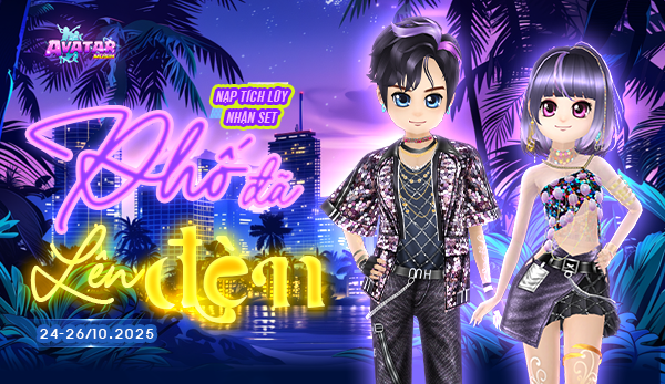 Chào các bạn, Phố đã lên đèn và em đã lên đồ! Thời trang sành điệu tiệc tùng một lần nữa đã được ghé thăm Avatar Musik trong sự kiện mới với thông tin I. Thời gian: 24/10 - 26/10 II. Nội dung: + Nạp tích lũy đạt 350 GEM…