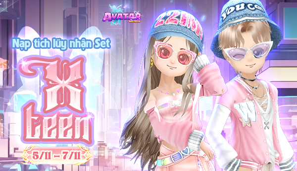Chào các bạn, Vẽ đẹp tuổi trẻ năng động trong set thời trang mới đã cập bến Avatar Musik với thông tin I. Thời gian: 05/11 - 07/11 II. Nội dung: + Nạp tích lũy đạt 350 GEM MỞ nhận thên SET X-TEEN + Nạp tích lũy đạt 450 GEM…